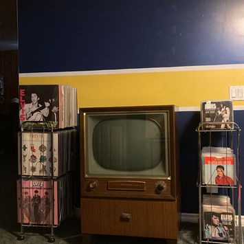 Copy of Graceland Media Room TCB painting and ceramic monkey
